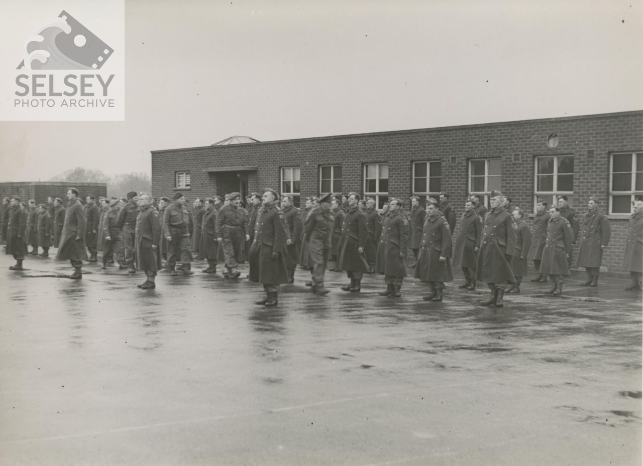 This inspection was held at East Street School which was erected in 1938 and offered education up to the age of 14. It was renamed as the Seal School in 1967. The building on the far left is an air raid shelter.