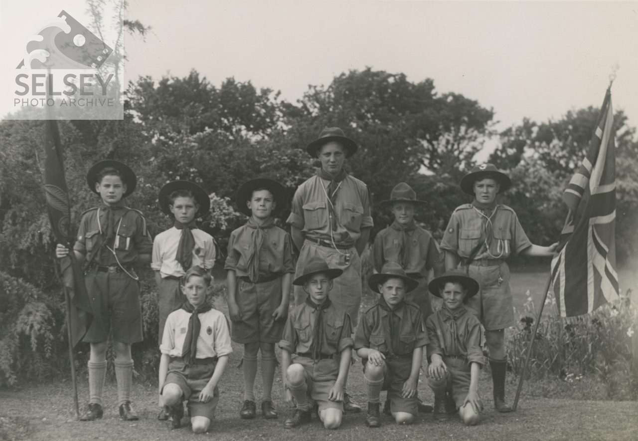 Scouts pose for a photograph in the grounds of St Peter’s Church on V.E. Day.