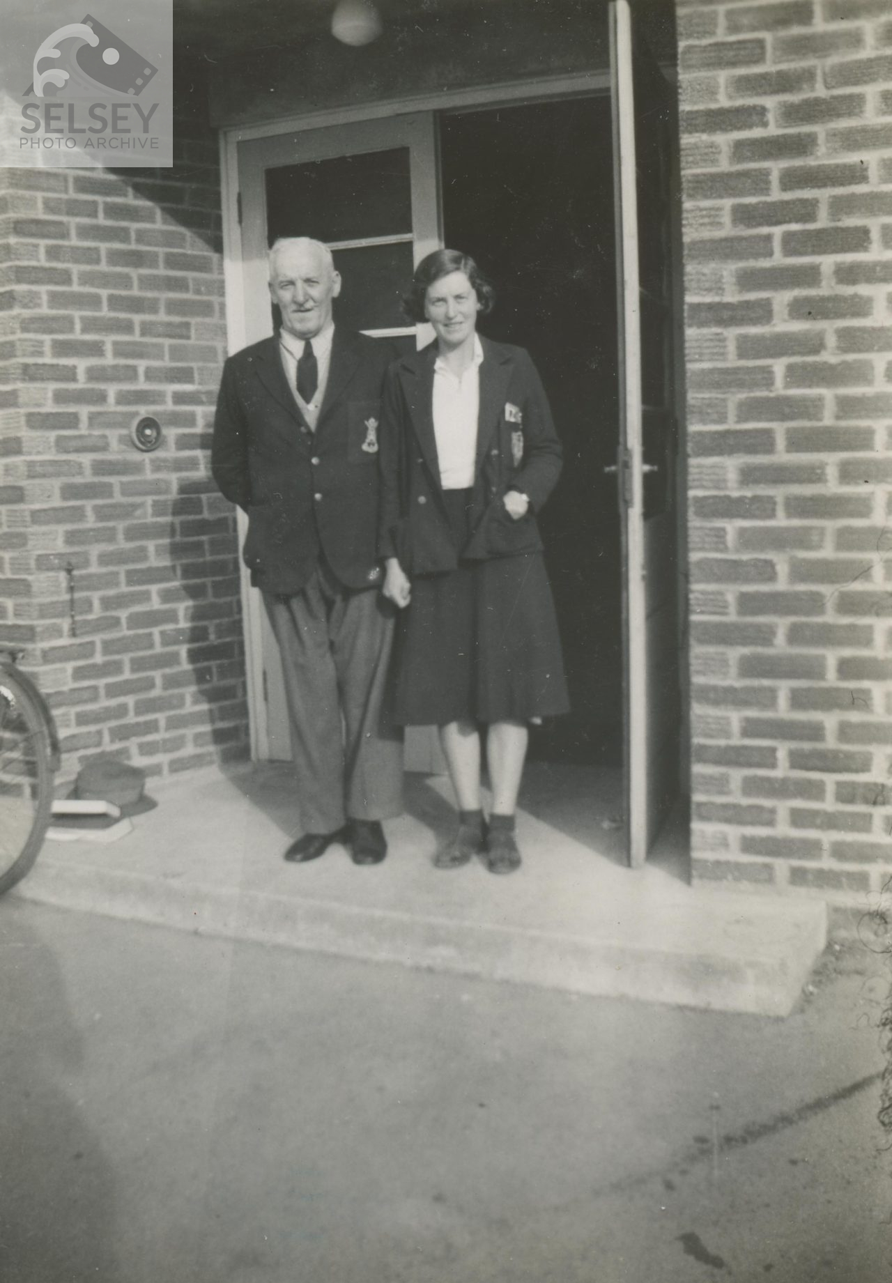 The man is Charles Vince, the lady is identified as Susan at the hall entrance.